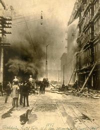 figthing the blaze. Photo says 1897, fire occured in 1898.